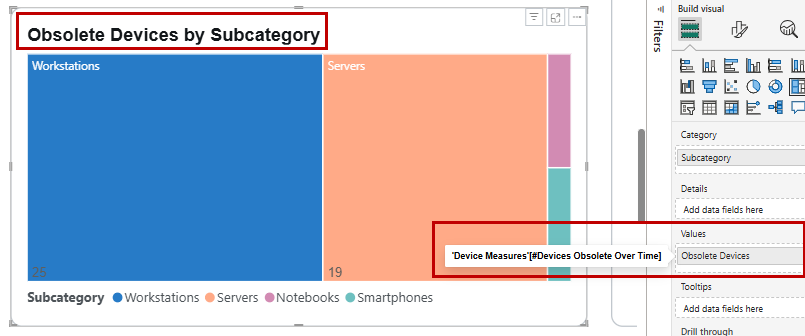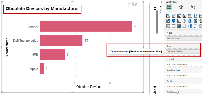 - Values: #Devices Obsolete Over Time (Measure), renamed as Obsolete Devices