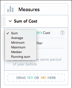 1. Drag a measure () or an attribute () from Data Catalog onto any drop zone to visualize it.
